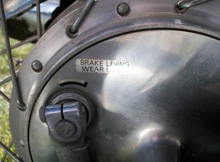 A brake wear indicator decal was added to the rear brake backing plate as can be seen in the photo lower left. For obvious reasons, these are now quite rare.