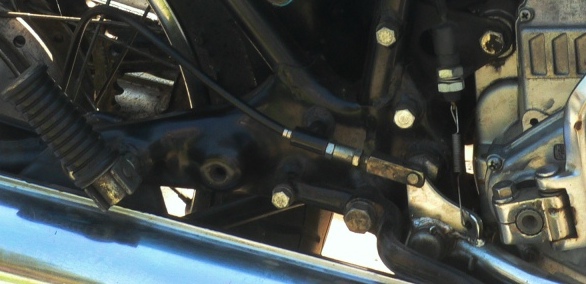 being held in place with a rubber strap - the lower support plate (44820-31000) used in the 1972/1973 models was removed
