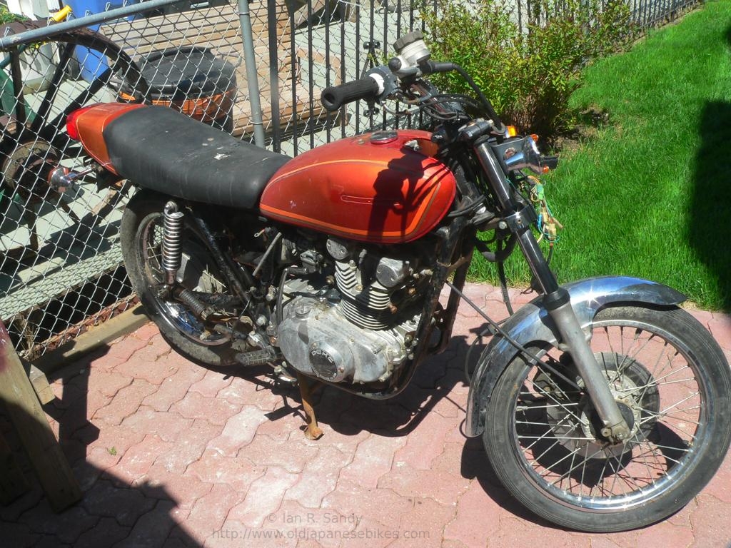 I picked up this bike, together with a pair of GT500's from a fellow in Vernon, BC in early June of 2009. To be completely honest, I didn't really want it, but it was a part of the 'package' so it made it on to the trailer and came home with the two Titans. Its been a few years since I worked on a 4 stroke - at one time I spent a lot of time on Honda CB350 and CB450's but it has been a while ! The engine doesn't run but at least it isn't seized, and the bike was mostly complete but in very rough shape. As with my other rebuilds, I will post whatever material I generate from my BLOG located here.