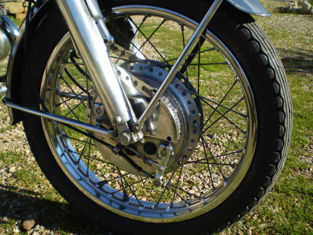 - The front brake is a dual panel drum type with four leading shoes. Drum diameter is 230mm (as also used on the Suzuki GT750)