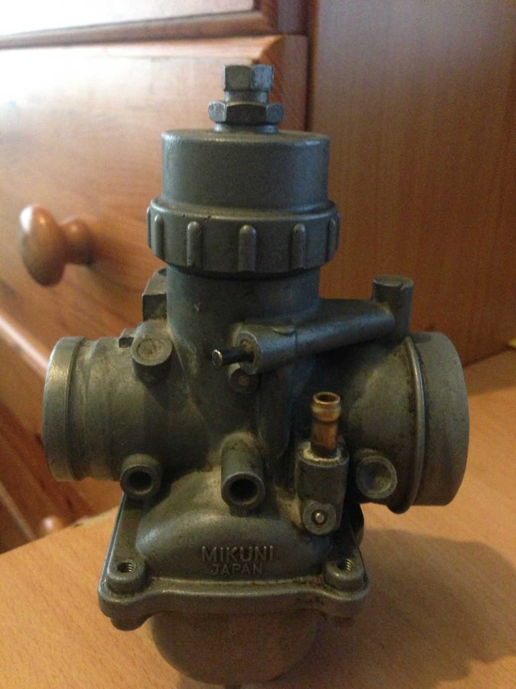 - Three individually mounted Mikuni VM 28 SC round slide, 'high top' carburettors. These changed to 'low top' carburettors during the 'K' production at frame 30716. Russell Armour has provided a few photos highlighting some of the features of the early style carburettors - just click on the image stack below.