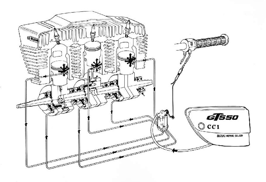 - Controlled by the throttle load and speed-dependent oil pump which fed a piped distribution system responsible for the lubrication of the crankshaft and the cylinder surfaces. The exception was the right crankshaft bearing, which was lubricated by the gear oil.