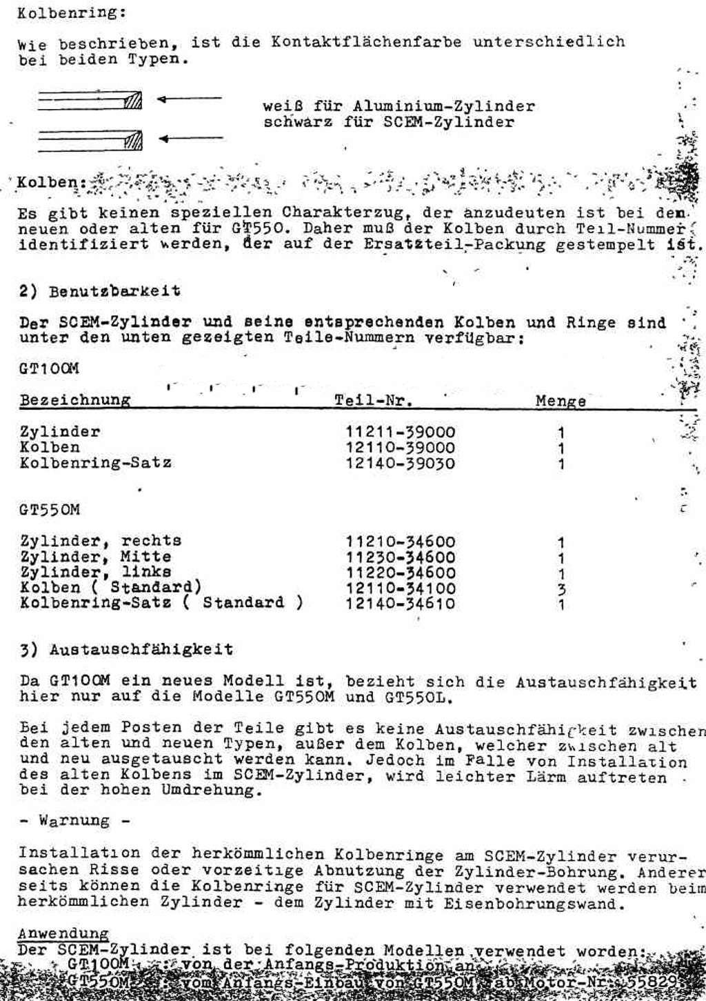 - Coated cylinders, similar to the Nikasil process of MAHLE, and was intended to increase the service life of the pistons and cylinders. This feature was introduced at engine number 55829 and only offered outside of North America on the M, A and B models. Service Bulletin #15 below (in German) gives additional detail.