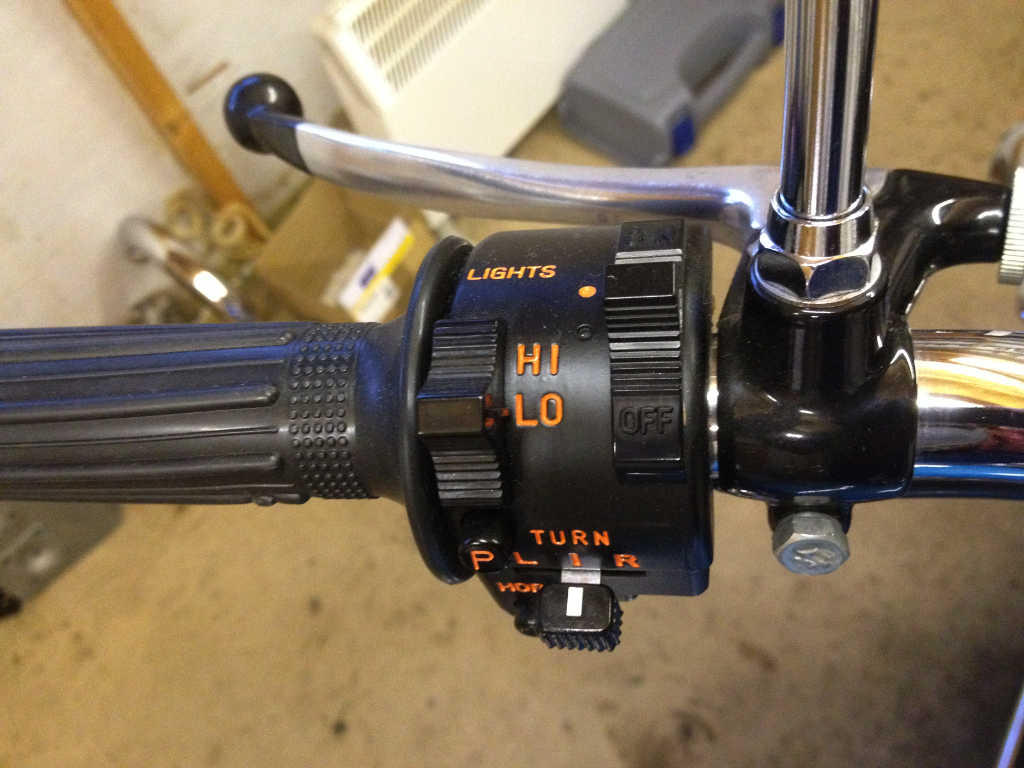 - The left switch gear included a pass or flash button on most models - the photo is of the 57700-31015 as fitted to the E1 'A' and 'B' models. On the right is the right side switch gear, which was basically unchanged for the 'K' through 'B' models.