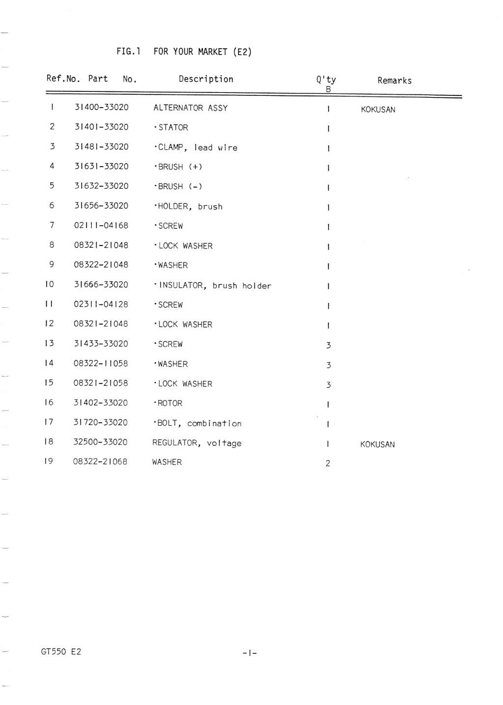 - Of interest is that for some reason the Kokusan aternator and regulator was fitted to the UK 'B' models, whereas the standard E1 model used the Nippon Denso which presumably would have been fitted to earlier UK models.