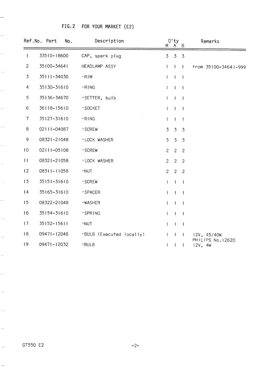 - For the 'M', 'A' and 'B' models, a safety lamp was added to the headlamp as a separate lamp socket in the left side of the main beam reflector (35100-34641).