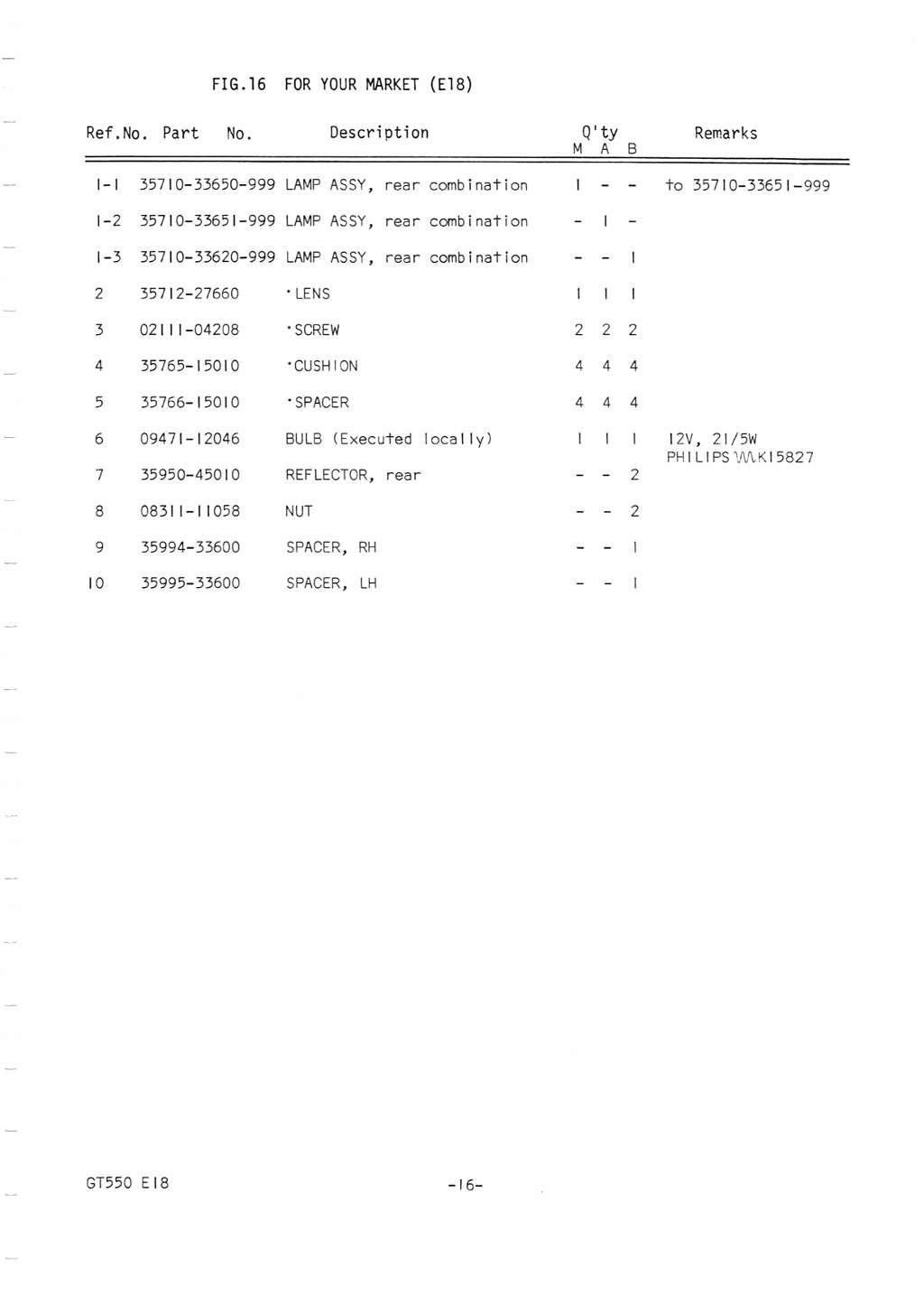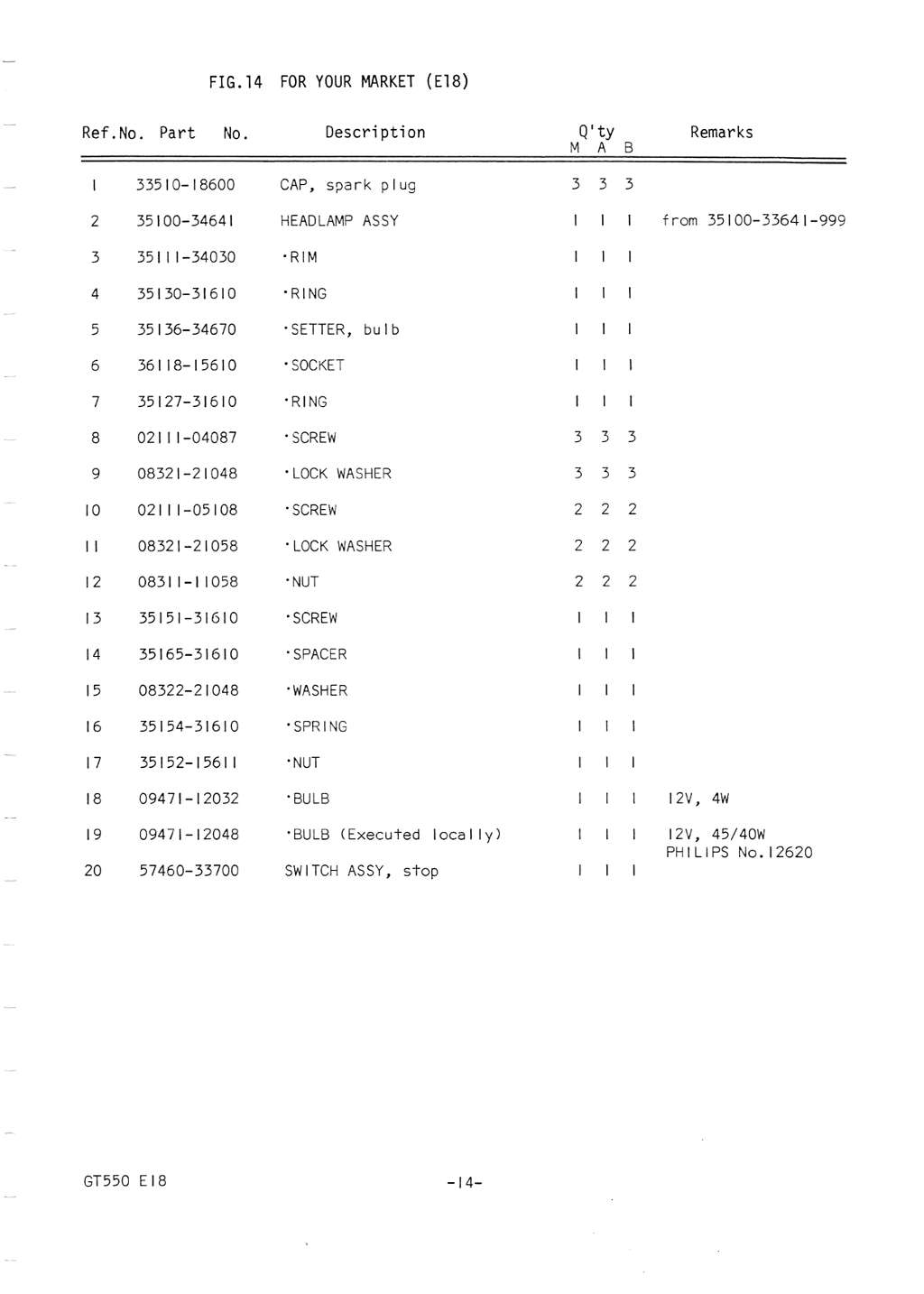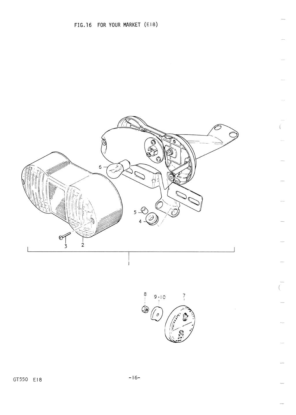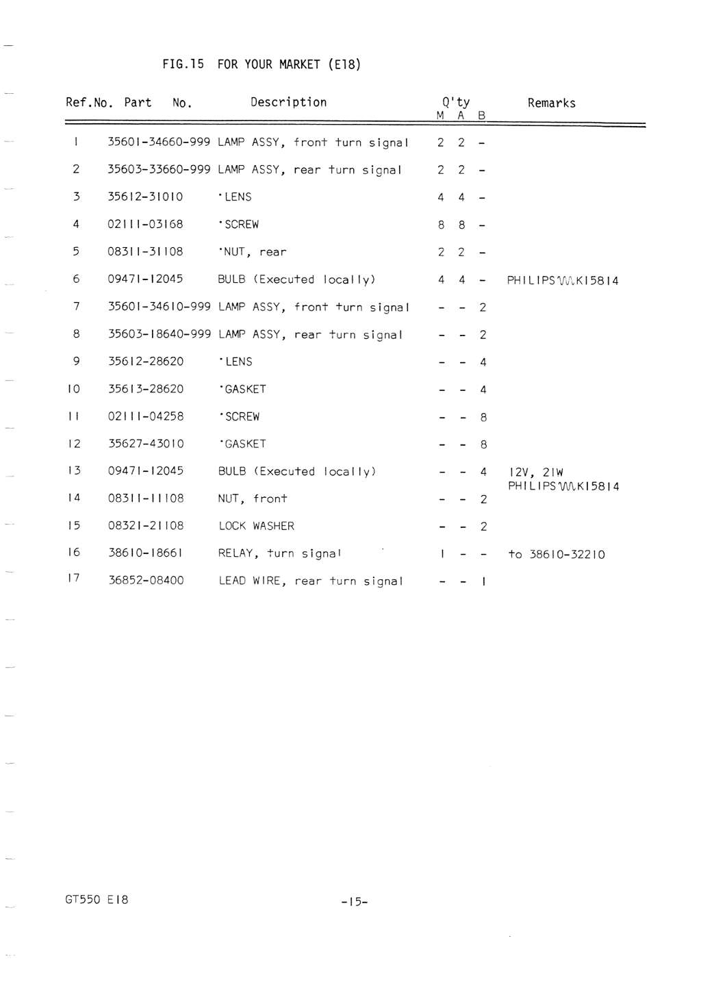 For the 'M' and 'A' models, the turn signals are similar to the general export model, except there is no reflector and no hole drilled to accept a side reflector(country specific part number 35601-34660 for the front, and 35603-33660 for the rear).