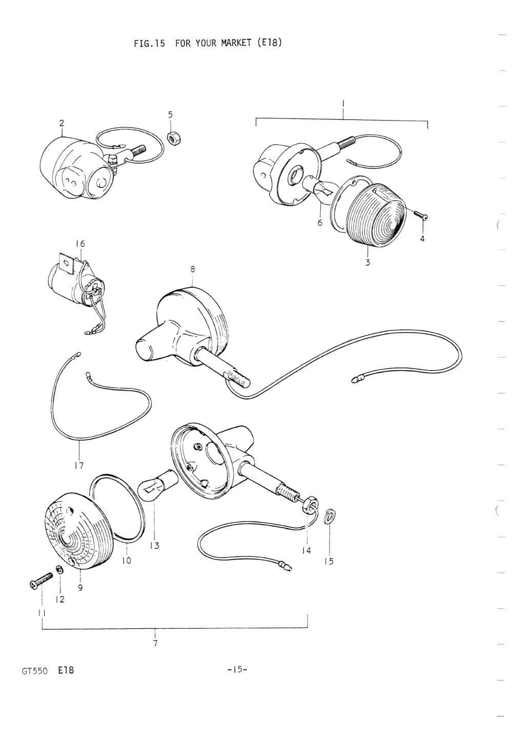 For the 'B' model specifically, the later style turn signals from the EU specification GT750 were used on the front (35601-34610), and for the rear, the rear turn signals from the EU specification GT380 were used (35603-18640).