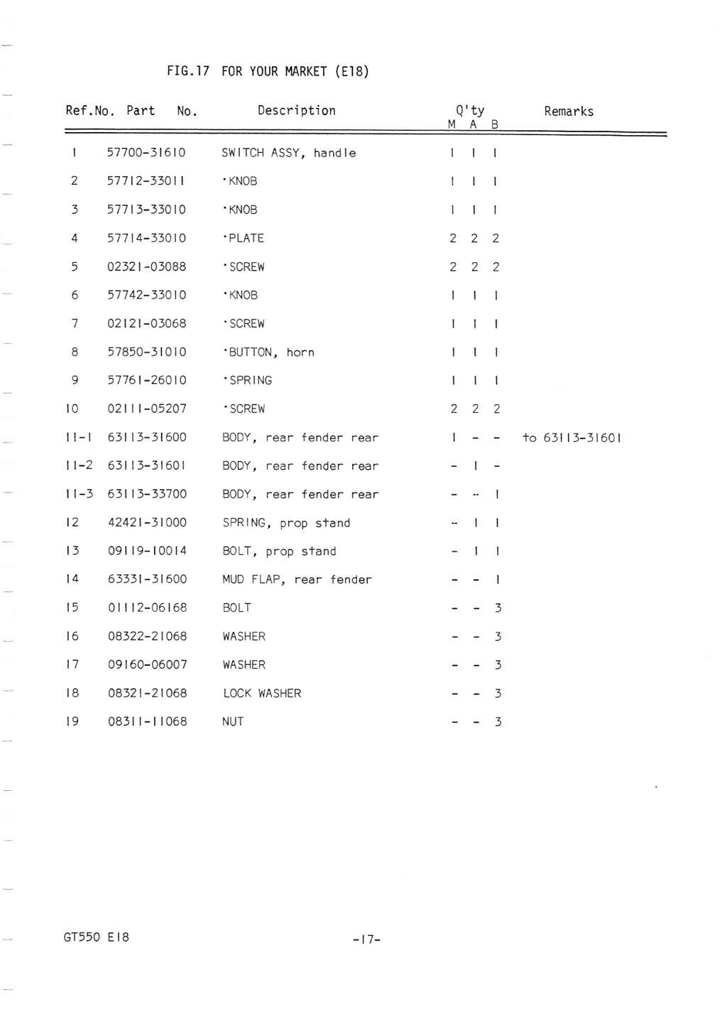 The rear fender was the European specification being longer with a flared end for the 'M' (63113-31600) and 'A' (63113-31601) and then to 63113-31700 for the 'B'.
