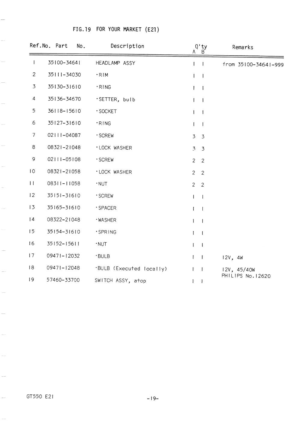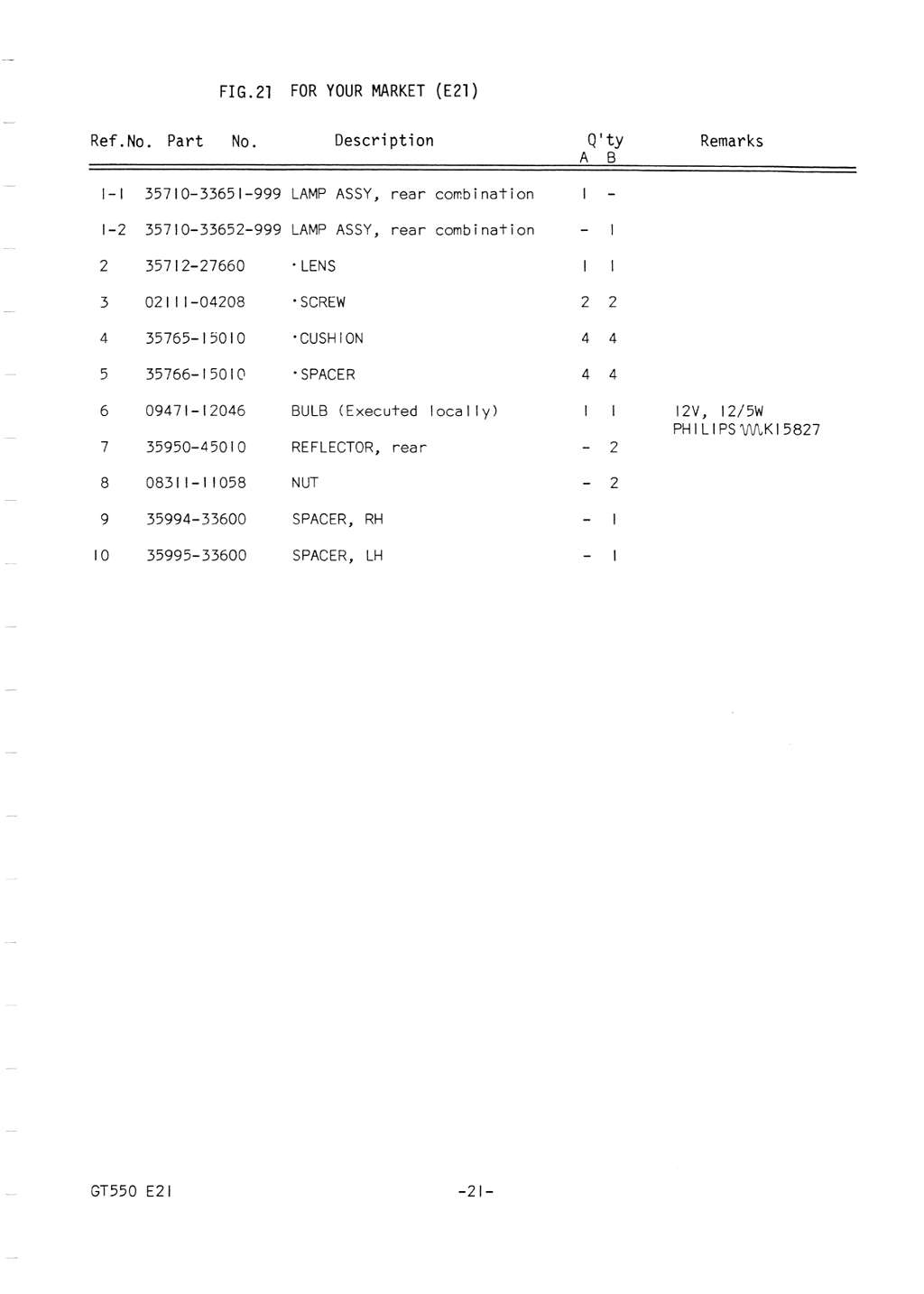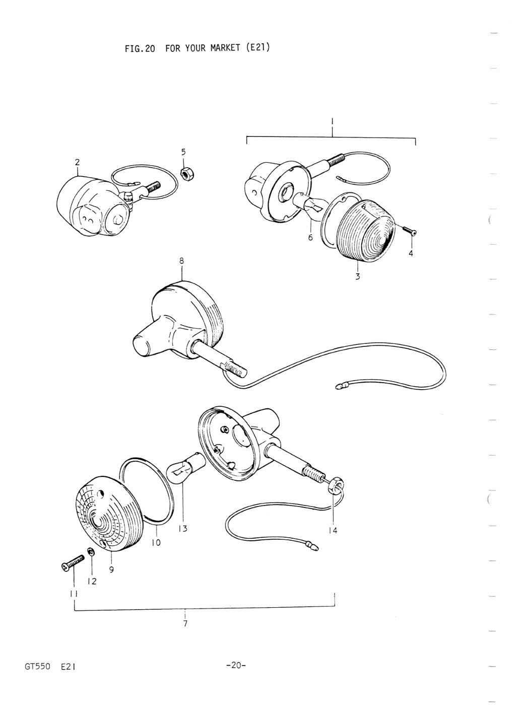 - As no side reflector was fitted, the turn signal housings were not drilled for the 'A' model and were similar to the units fitted in some other countries (Germany) under part numbers 35601-34660-99 for the front, and 35603-33660-999 for the rear