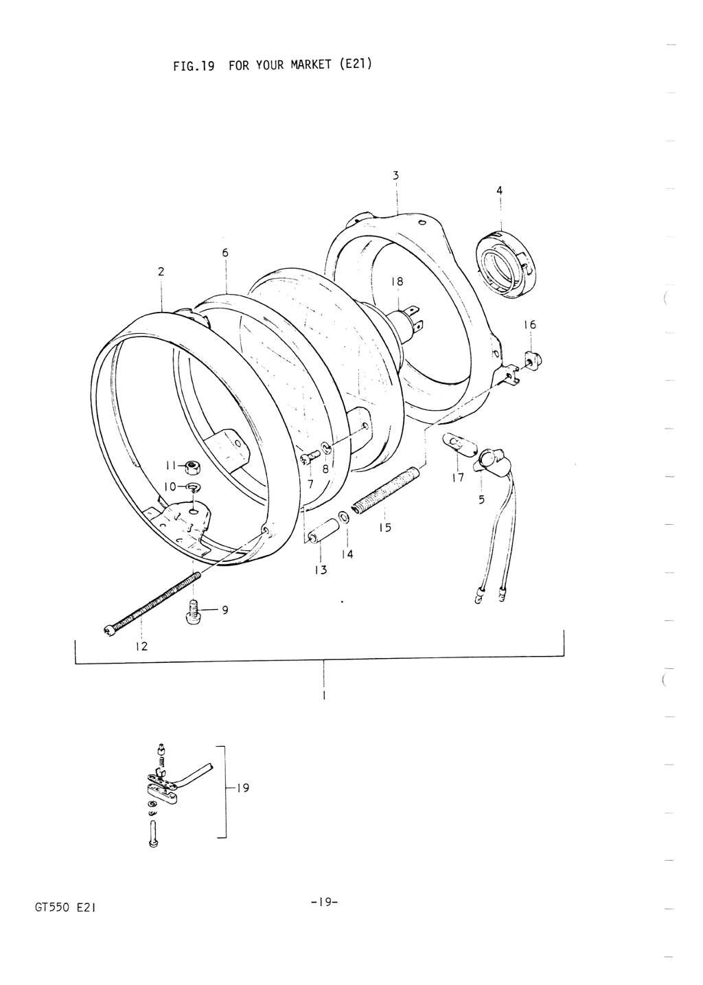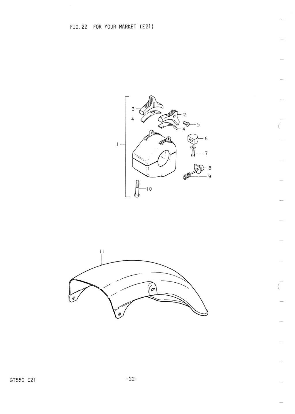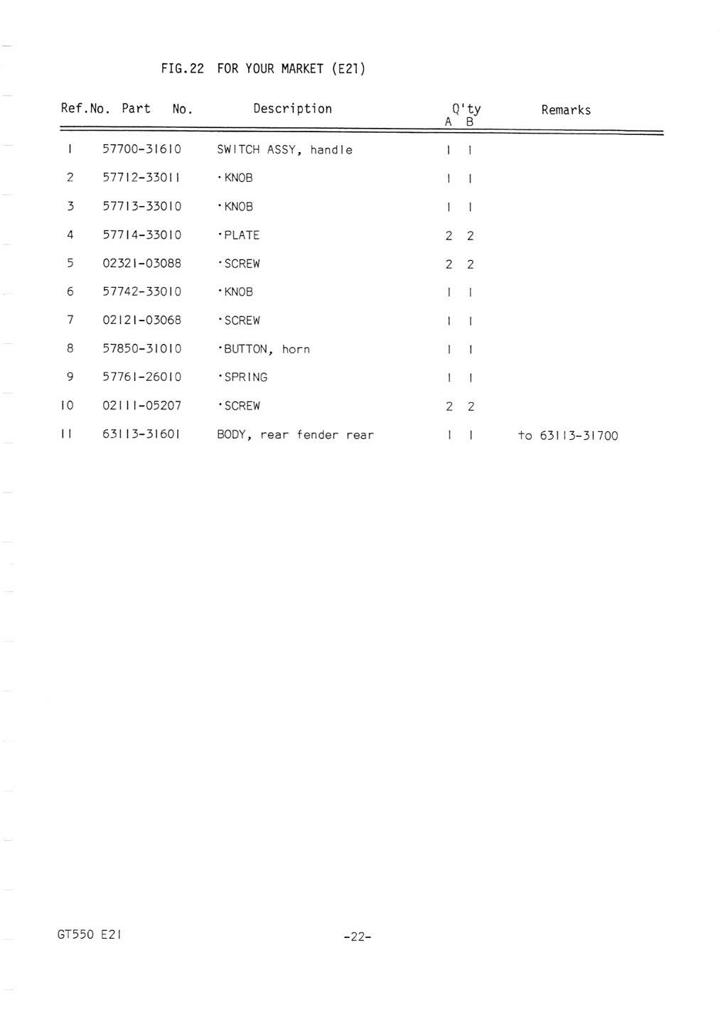 - As no side reflector was fitted, the turn signal housings were not drilled for the 'A' model and were similar to the units fitted in some other countries (Germany) under part numbers 35601-34660-99 for the front, and 35603-33660-999 for the rear