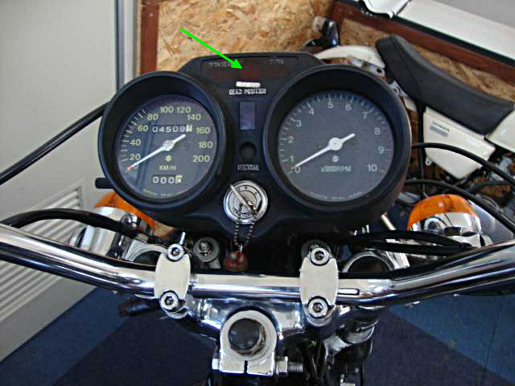 Japanese domestic market machines included the 80 kph warning lamp in the new warning panel between the high beam and turn signal indicator lights with a decal positioned above the 'Gear Position' indicator lettering as seen in the photo below.