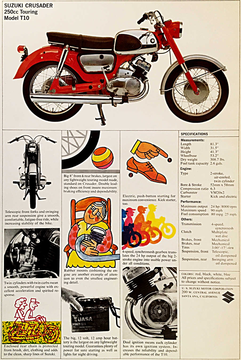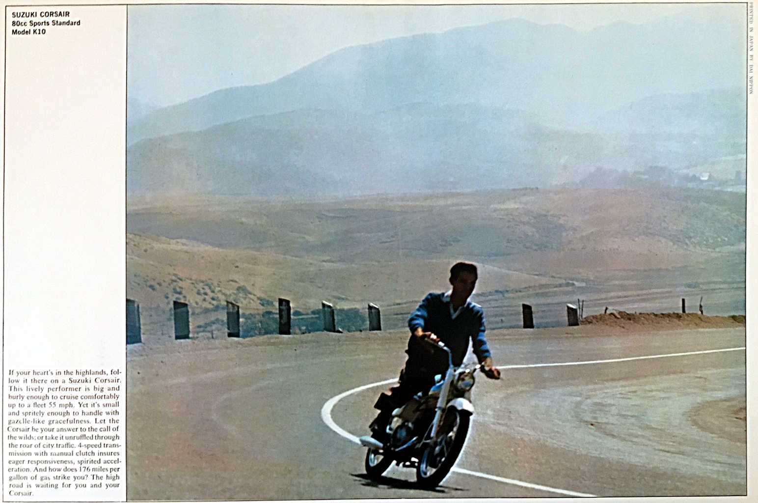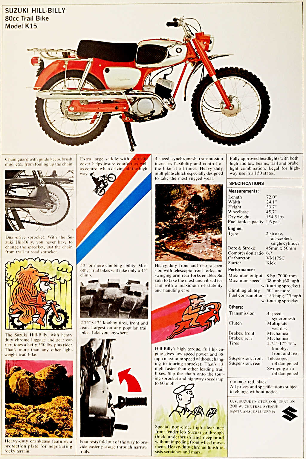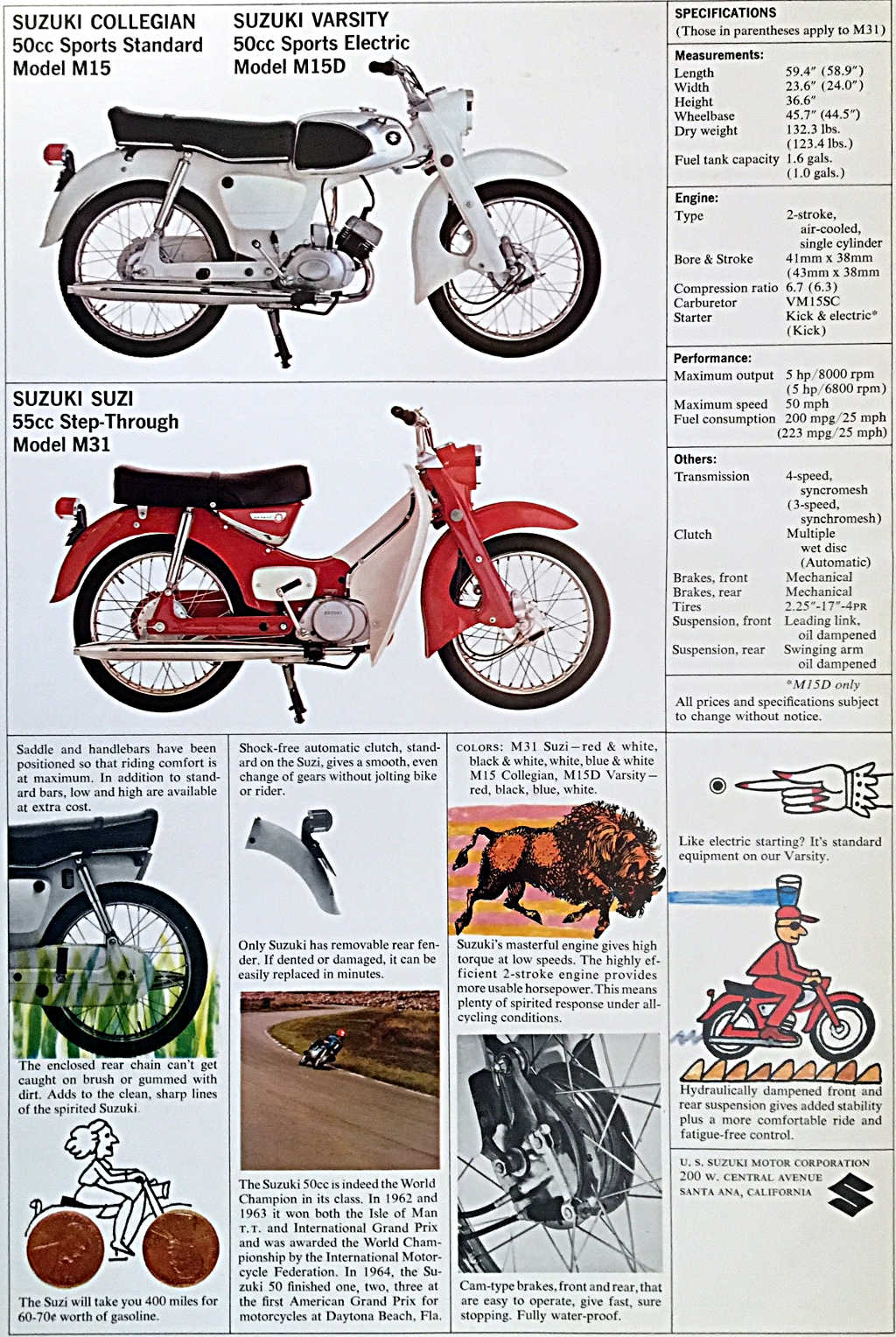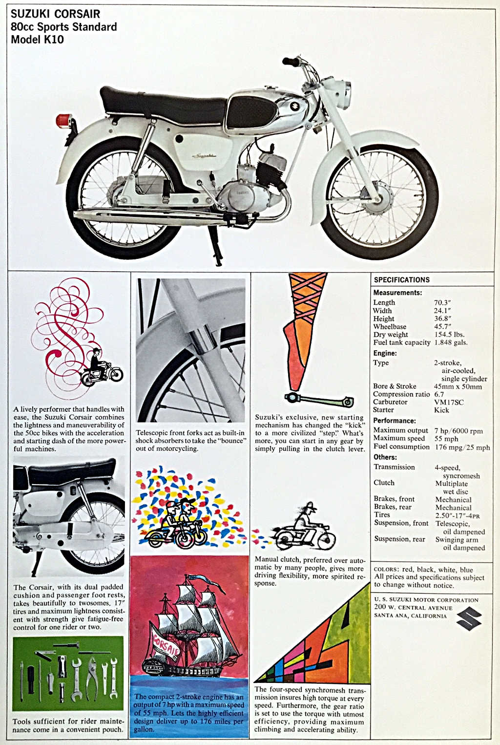 Chip Miller is an ace serial Suzuki restorer in the USA, and he sent me scans of this information package which I suspect was intended for dealers rather than buyers. It appears to be a U.S. Suzuki Motor Corporation publication, rather than one created in Japan. Just 'click' on any image to see a larger version.