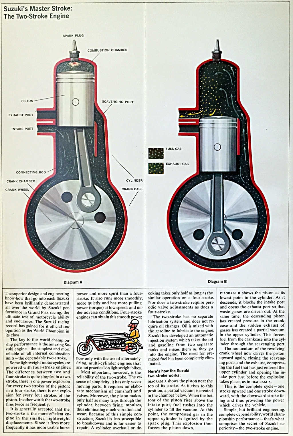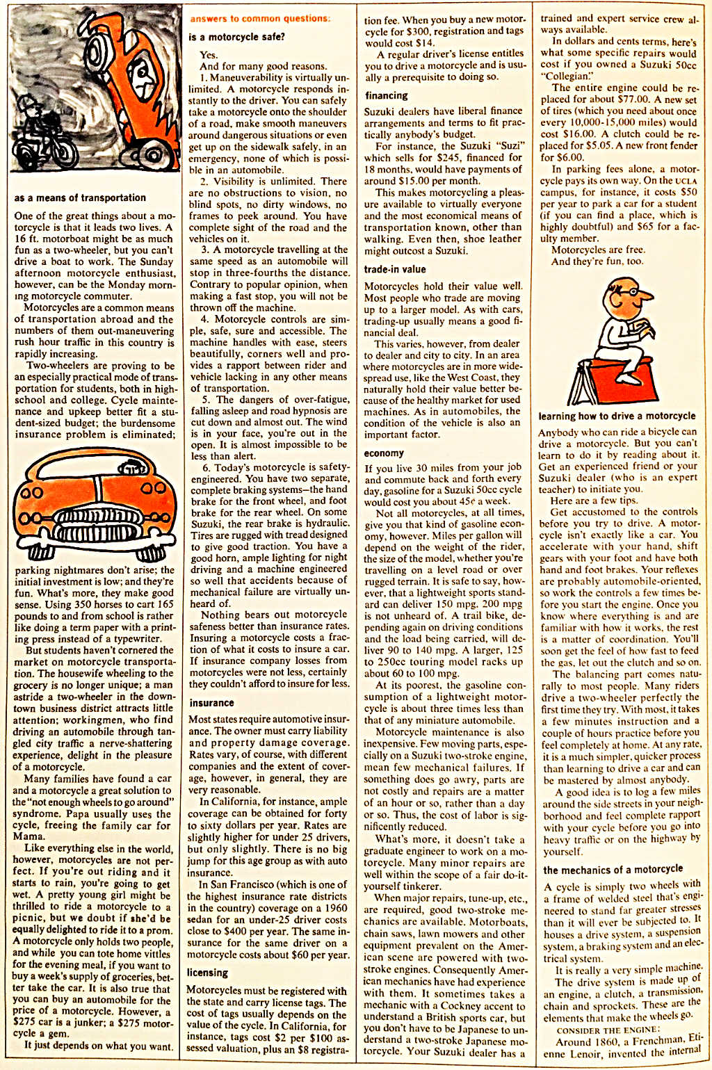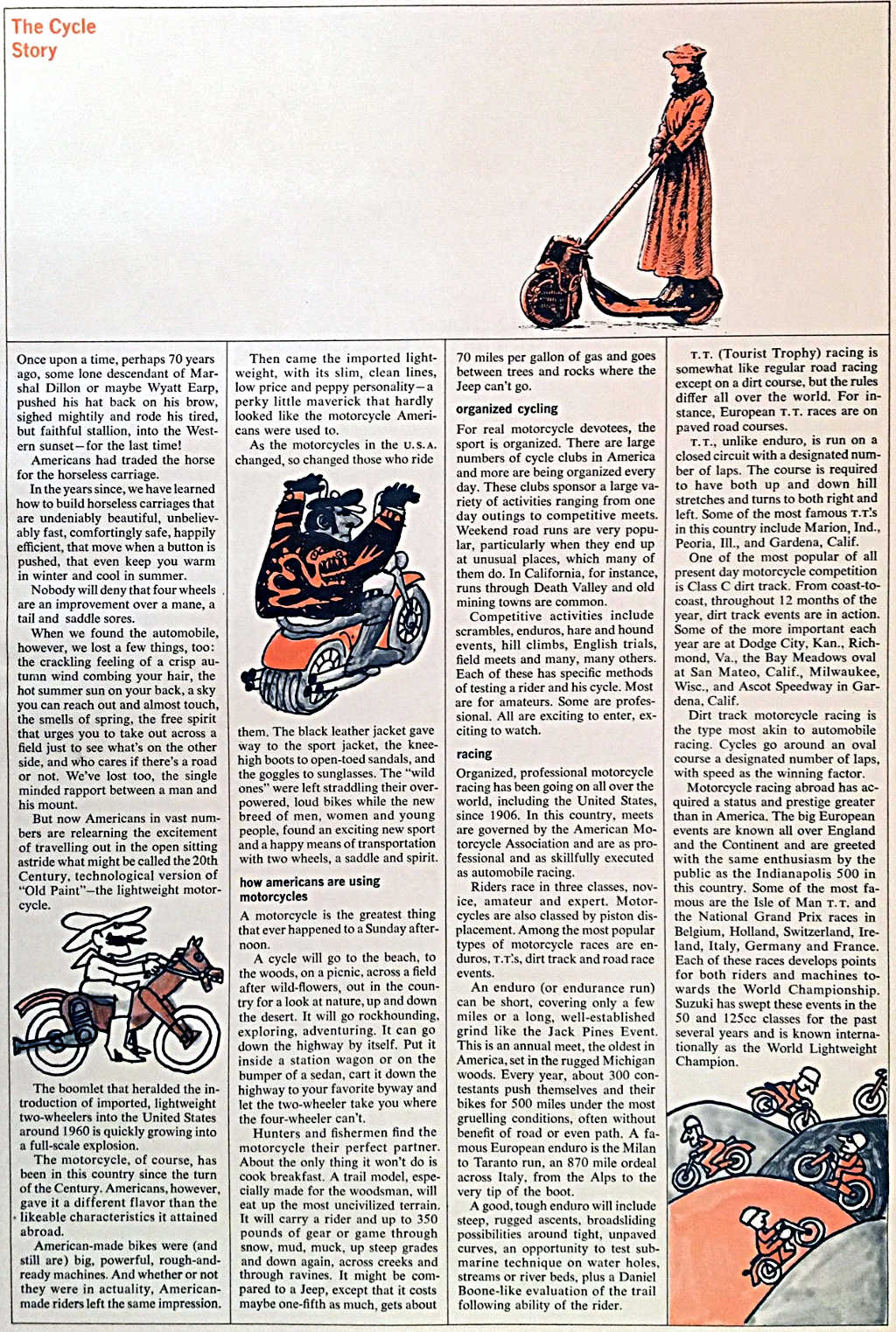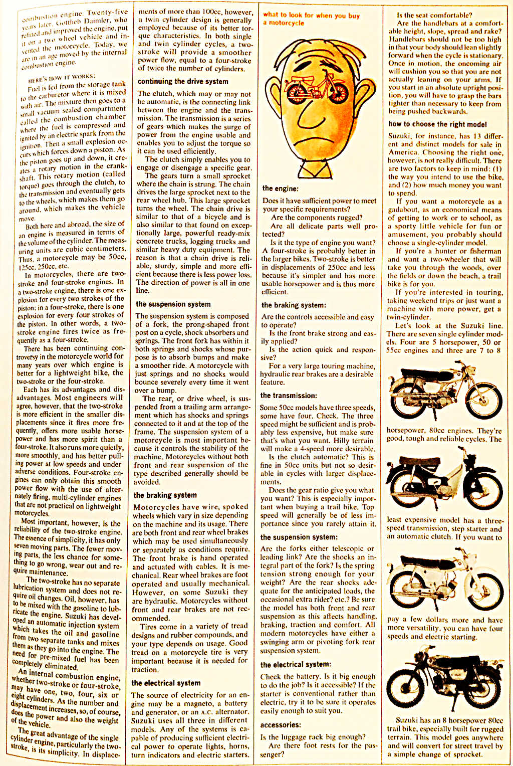 Chip Miller is an ace serial Suzuki restorer in the USA, and he sent me scans of this information package which I suspect was intended for dealers rather than buyers. It appears to be a U.S. Suzuki Motor Corporation publication, rather than one created in Japan. Just 'click' on any image to see a larger version.