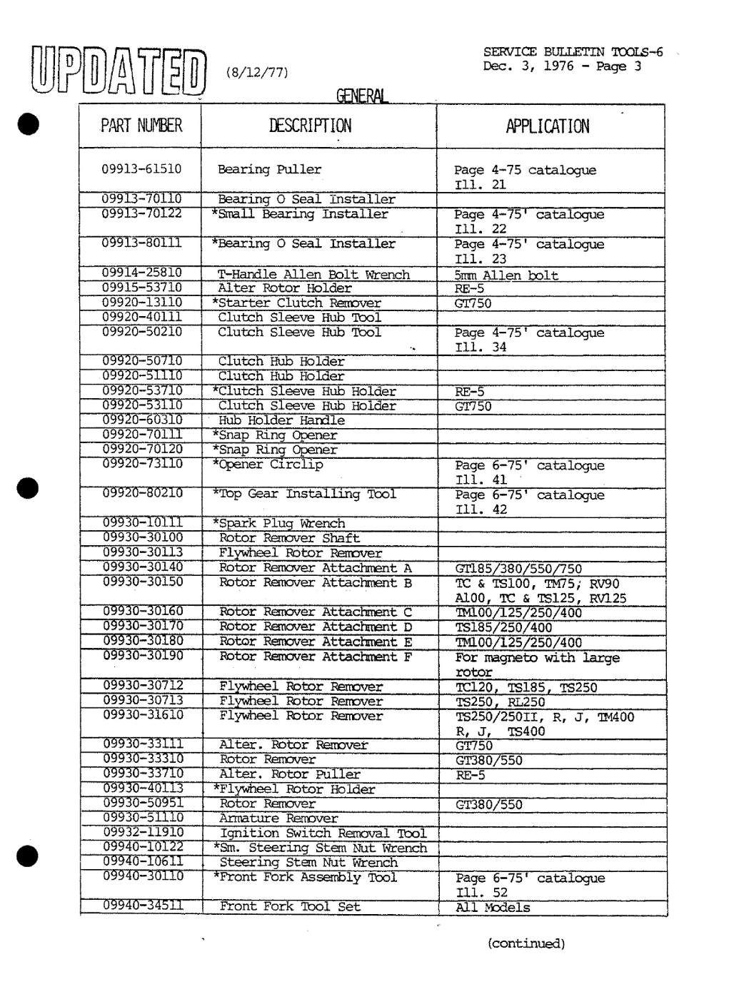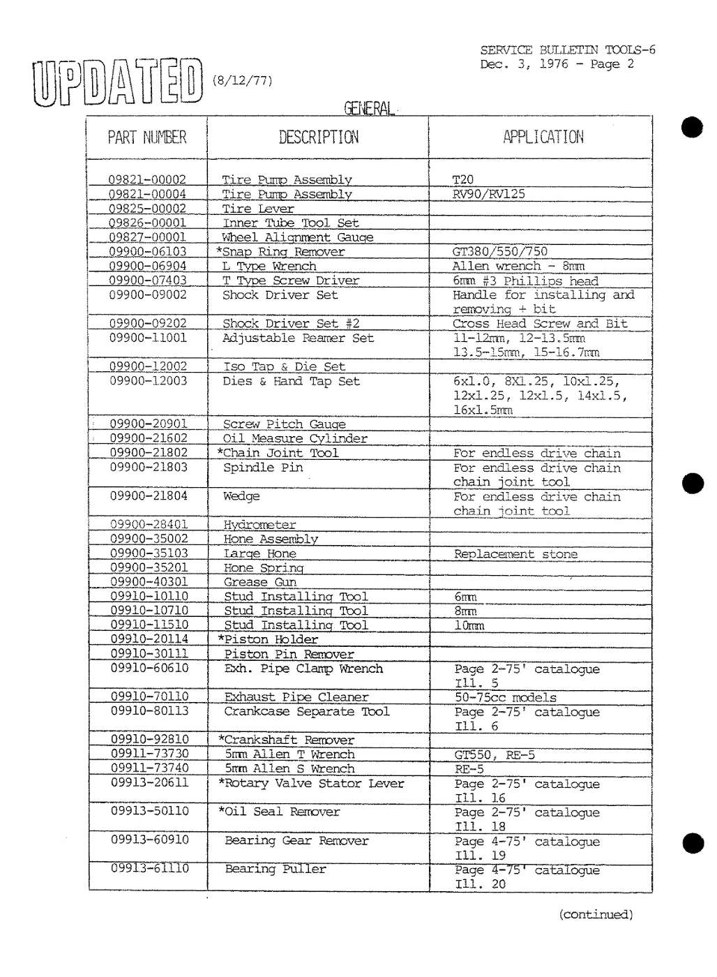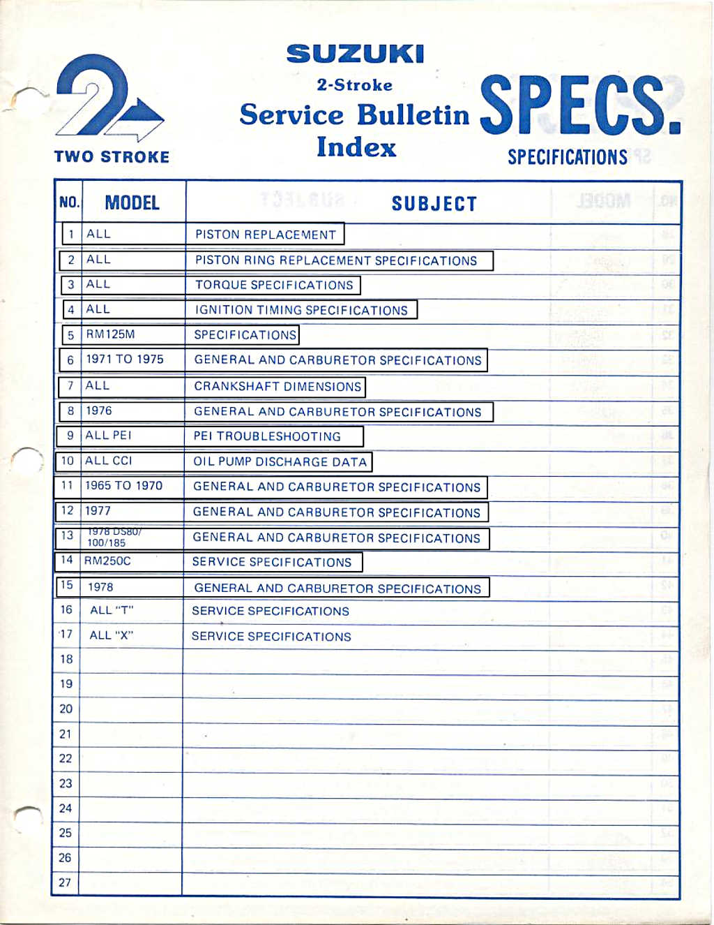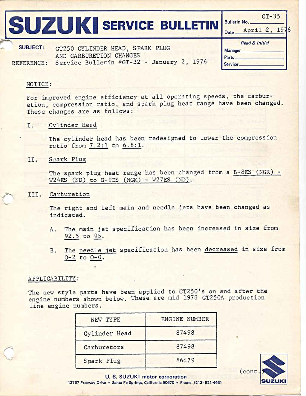 The Suzuki USA bulletins are more structured than the Canadian ones as they are grouped by product line: T or GT for example. The Canadian ones are by year and so include service bulletins for all models sold in that year.
