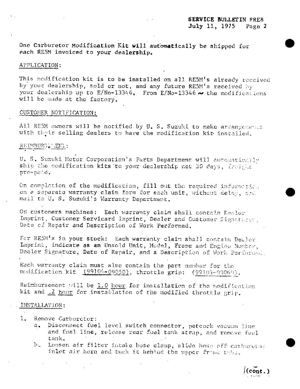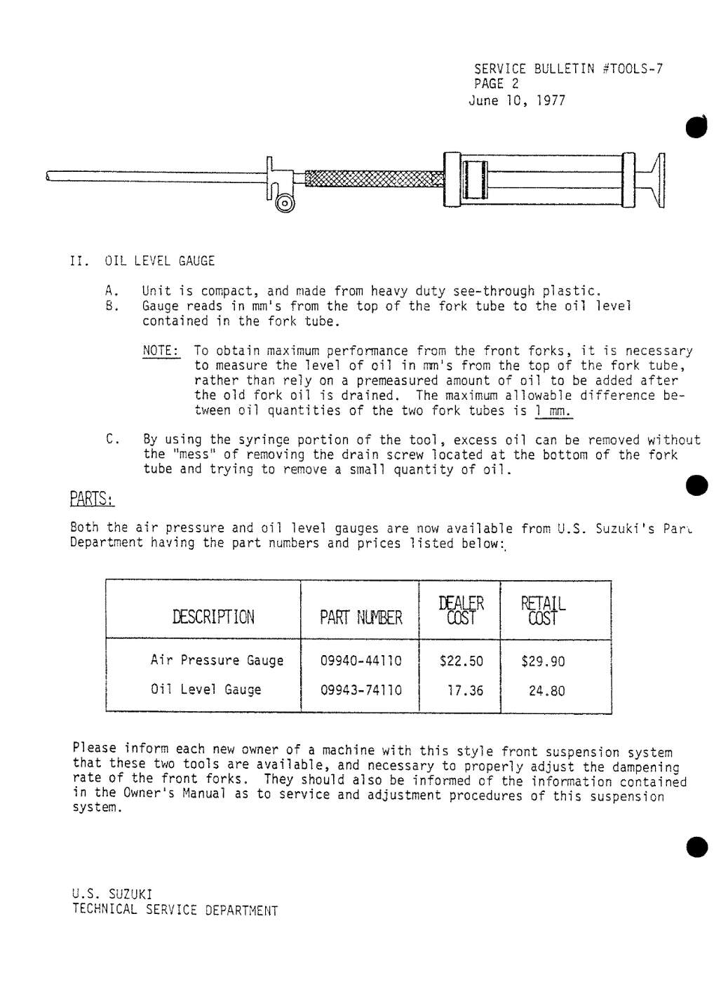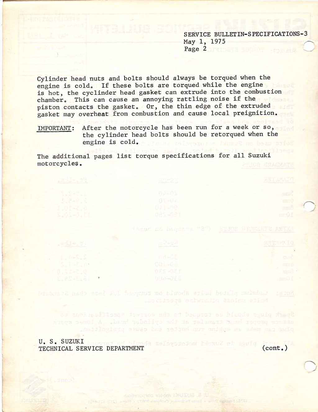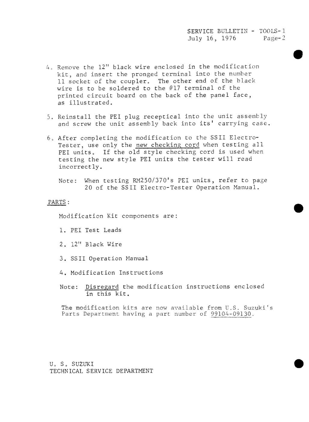 Suzuki US Service and Technical Bulletins