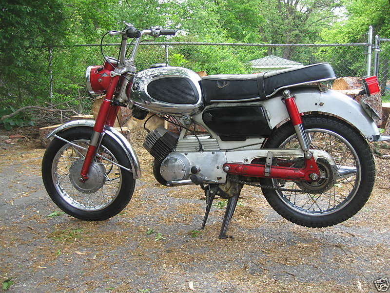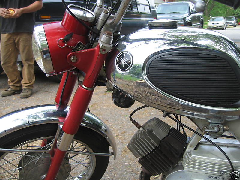 The 125cc YA6 was the first bike I owned back in 1970, and I drove the wheels off of it. After moving back to Canada and retiring I started to look around for a decent example and in 2008 found this one in New Jersey. It was conveniently close to my brother's place and so provided the perfect excuse for a road trip to pick it up. This one was reasonably complete, although it was a bit of a mongrel as the tank and side covers were from a different bike than the frame, but it did run after a fashion which was good enough.